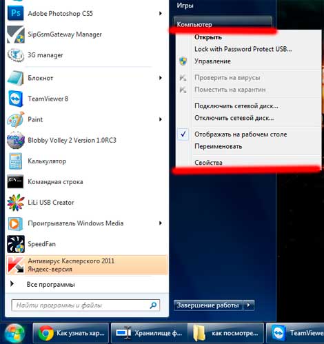 Самый простой способ, не зависимо от версии операционной системы windows, это на значке «мой компьютер» выбрать «свойства». Если у вас ярлык, то идем «Пуск» находим надпись «Компьютер», жмем правой кнопкой мышки на нем и выбираем «свойства»