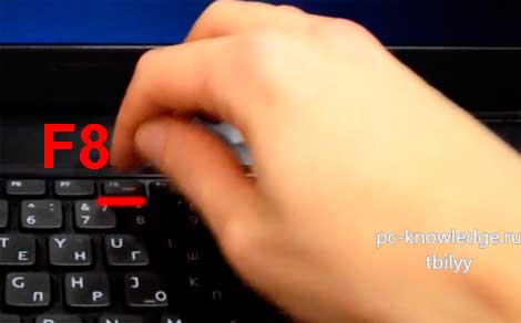 Итак, поехали. Компьютер должен быть выключен либо нужно его пустить на перезагрузку. Почти сразу же после старта на клавиатуре нужно жать много раз жать «F8». Не зажать и держать, а именно часто нажимать.