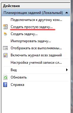В отрывшемся окне во вкладке «Действия» кликаем по пункту «Создать простую задачу»: