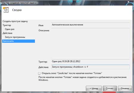 Автоматическое выключение компьютера при помощи планировщика заданий