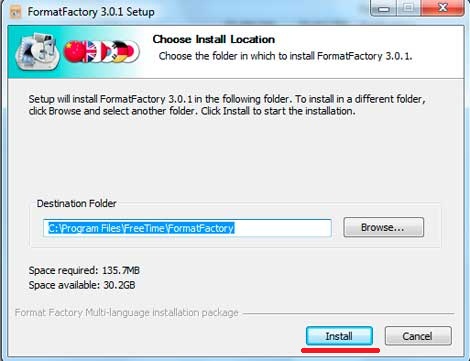 Файл весит чуть больше 50 Мб, после того как он загрузиться, запускаем установку. В первом окошке можно выбрать директорию. Установленная программа будет весить около 135 мб. Нажимаем «Install»