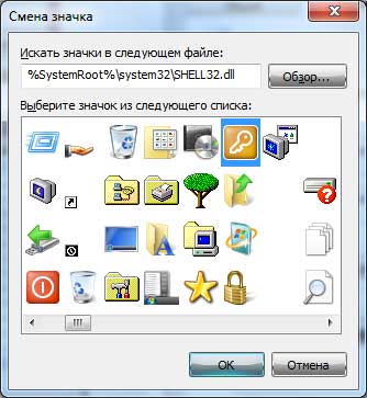 Выбираем подходящий значок и жмем на кнопку «ОК».