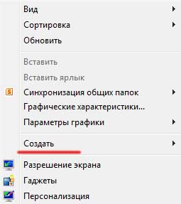 Кликаем правой кнопкой по рабочему столу и выбираем пункт «Создать» из выпавшего меню: