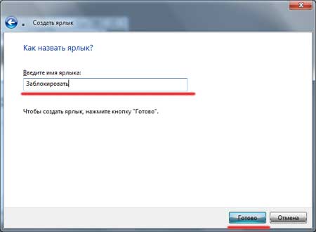 Вводим имя ярлыка и жмем на кнопку «Готово».