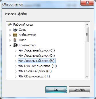 Выбираем папку, в которую хотим извлечь файлы и нажимаем на кнопку «ОК».