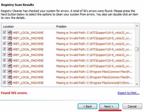 Начинается поиск ошибок реестра, когда закончиться жмем «next».