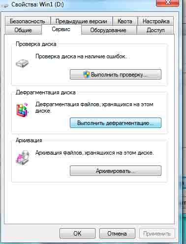 Далее перейдем во вкладку Сервис и нажимаем Выполнить дефрагментацию
