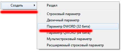 В правом окне может быть параметр «DisableTaskMgr», удалите его или поставьте значение «0». Если его там нет, нажимаем в правом окне правую кнопку мышки, выбираем «создать параметр DWORD (32бита)»