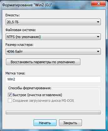 Иногда, раздел, используемый различными программами тоже невозможно отформатировать. Можно попробовать отключить все лишнее через команду msconfig во вкладках автозагрузка и службы , перезагрузить windows, отформатировать нужный нам раздел,