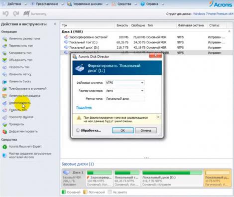 Однако находясь в операционной системе вы не сможете отформатировать системный диск.
