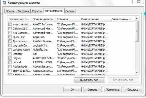 Жмем Пуск – Выполнить - пишем msconfig - enter для win XP или Пуск - строчка поиска для win 7 как на скриншоте ниже