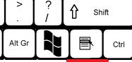 Клавиша Menu расположилась рядом с правым CTRL, на ней нарисована табличка со стрелочкой. Данная клавиша заменяет правую кнопку мышки.