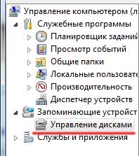 Открывается окошко, в левом столбике которого ищем пункт «Управление дисками».