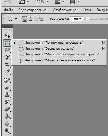 Выбираем в панели инструментов инструмент «Прямоугольник»