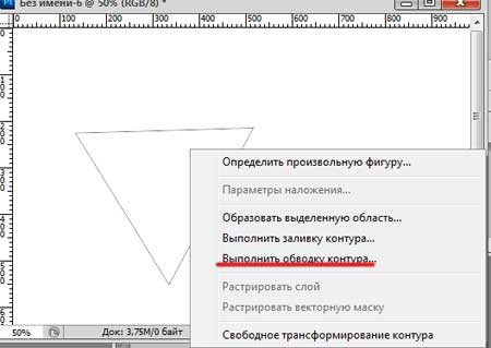 Рисуем треугольник на новом слое. Кликаем по нему правой кнопкой мыши и выбираем пункт «Выполнить обводку контура».
