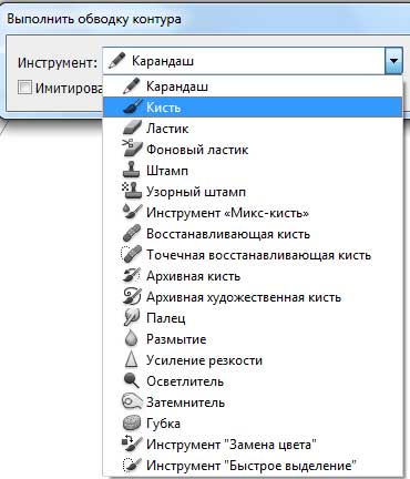 Далее выбираем, чем обводить. Я выбираю кисть.