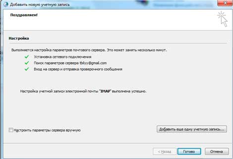 Все ваша почта настроена, можете добавить несколько почтовых ящиков, нажав кнопку «Добавить еще одну учетную запись», но я рекомендую освоиться пока что с одной, жмем «Готово»