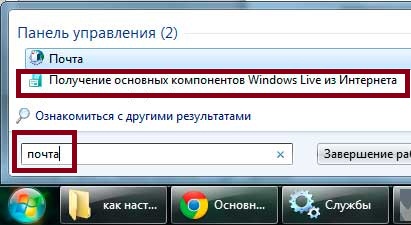 Как настроить аутлук надеюсь, мы разобрались, а что делать если у нас windows 7 или 8 в которых может не быть Outlook. Поможет Windows Live, который можно найти - «Пуск», «Все программы», «Windows Live», «Почта Windows Live». Если же его и тут нет нажимаем «пуск», «выполнить» и печатаем слово «почта». Вы светиться надпись «получение основных компонентов windows live из интернета», нажимаем на эту надпись.