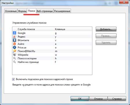 Как настроить поиск в Опере