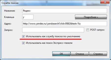 Ставим птичку напротив пункта «Использовать как службу поиска по-умолчанию». Жмем «ОК»