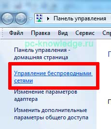 Далее жмем «Управление беспроводными сетями» в меню слева.