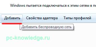 Как найти скрытую сеть wifi через данное меню. Тут будет список ваших подключений, либо просто пусто. В любом случае жмем «Добавить».