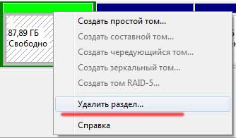 Снова кликаем по выбранному разделу и выбираем пункт «Удалить раздел»