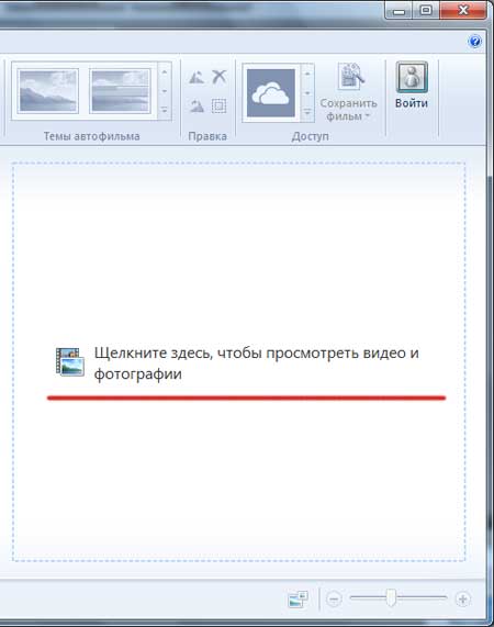 Открывается окошко программы. Мы можем сразу на рабочей области кликнуть по ссылке «Щелкнуть здесь, чтобы просмотреть видео и фотографии»