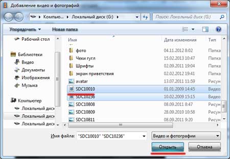 Ищем на компьютере видеоролик, который необходимо обрезать и добавляем его.