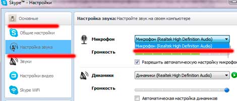 Теперь в «Основные» выберите «Настройка звука». Там будет микрофон, и справа от него можно выбирать его название. Попробуйте поменять, после чего нажать «Сохранить»