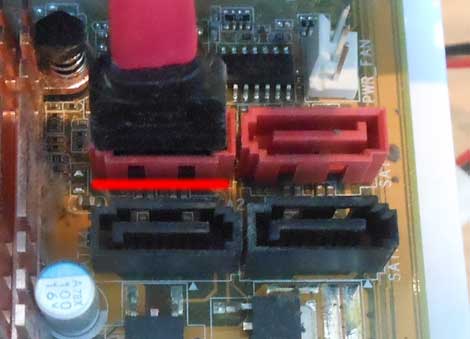 Если у вас нет такого шнура, его нужно купить в любом компьютерном магазине, стоит он копейки (информационный SATA кабель). Если у вас нет разъёма на материнской плате, значит вы плохо искали или вашу плату выпустили лет 10 назад.