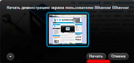 У нас переспросят, начинать ли демонстрацию экрана собеседнику, жмем «Начать»