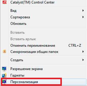 В семерке и подобным ей операционным системам (виста, восьмерка) на рабочем столе жмем правой кнопкой мышки и выбираем пункт меню «Персонализация».