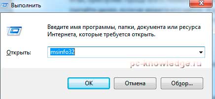 Высветиться окошко, в котором необходимо ввести «msinfo32» без кавычек, и нажать «ок» или «Enter».