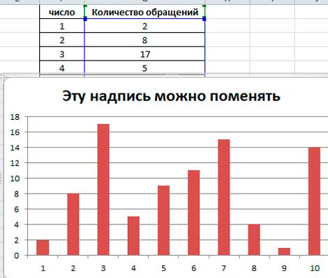 Как построить диаграмму в excel 2007 и выше. В 2003 принцип тот же, только интерфейс немного другой. Разберем простой вариант. Например, у нас есть таблица с 2-мя значениями. Число, и сколько человек обратилось в этот день. Нам нужно сделать диаграмму, чтобы было видно всю картину за 10 дней. Для этого выделяем всю таблицу.