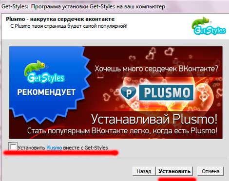 Ресурс бесплатный, поэтому куча всяких сторонних программ нам хотят установить вместе с этой, но можно отменять, снимите галочку, с того, что предлагают в рекламе, или оставляйте, если оно вам надо, и жмем «установить»