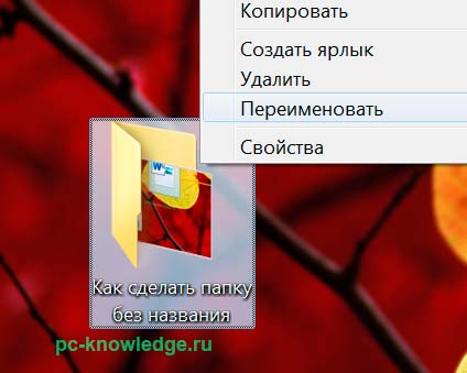 Чтобы его набрать, нам понадобиться следующее. Переименуем папку или документ. Нажимаем правой кнопкой мышки, выбираем поле «Переименовать».