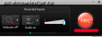 Появиться дополнительное окошко, когда будете готовы, нажмите кнопку «rec» для начала записи. Начнется отсчет «3…2…1…» и пойдет запись экрана и всего что вы будете говорить.