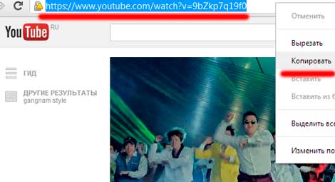 После установки заходим на YouTube, и копируем ссылку, адрес URL, того клипа, с которого хотим достать аудио.