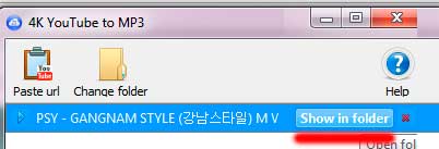 Начнется процесс конвертации. Длится он будет в зависимости от продолжительности видео и вашего интернет соединения. После окончания вы сможете прослушивать музыку прямо с программы, либо нажав «Show in folder» открыть папку, где будет лежать готовый, сконвертированный mp3 файл.