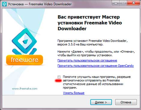 Запускаем загруженный файл, выбираем русский язык. Минус бесплатной программы в том, что нам предложат установить и участвовать во всякой ерунде. Но мы установим только программу. В мастере установки снимаем галочку с «помогите улучшить наши программы…». Если не сняли ничего страшного. После чего жмем «далее»
