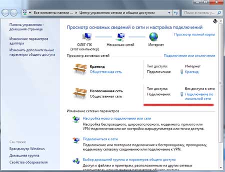 Находим наше «Подключение по локальной сети» и кликаем по нему левой кнопкой мыши: