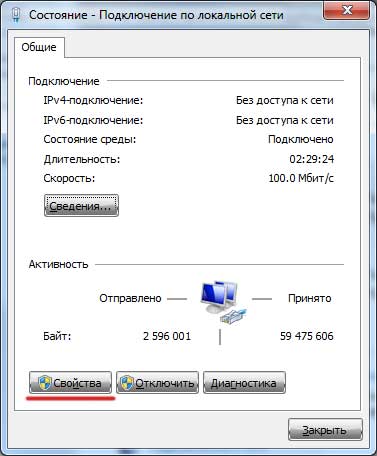 В открывшемся окне нажимаем на кнопку «Свойства».
