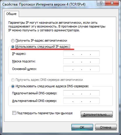 Ставим переключатель в положение «Использовать следующий IP-адрес» и вводим необходимое значение: