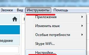Если скайп запускается одновременно с загрузкой операционной системы, и вы хотите отключить данное действие, либо наоборот вы бы желали, чтобы после включения компьютера сразу открывалось окно Skype, то выполните следующие действия. После авторизации в верхнем меню нажмите вкладку «Инструменты» и перейдите в поле «Настройки»