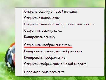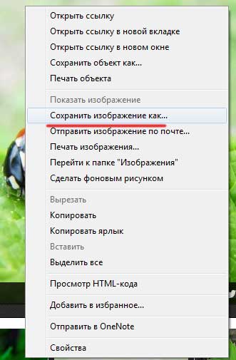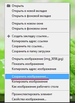 Вначале принчип действия у всех браузеров одинаковый: мы находим нужную картинку на каком-нибудь сайте и прямо по ней кликаем правой кнопкой мыши, а вот дальше идут небольшие разбежности в выпавшем меню.