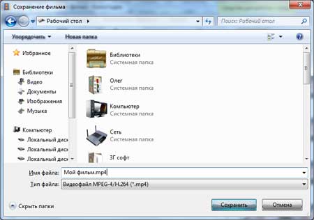 Указываем место, куда необходимо сохранить ролик, а также его название: