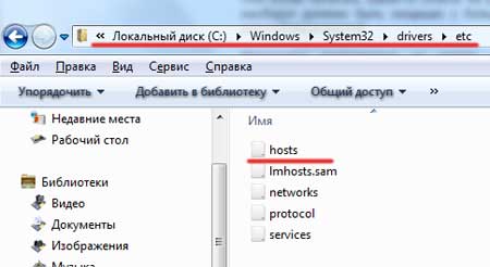 Теперь ищем файл hosts для этого идем в директорию C:\Windows\System32\drivers\etc: