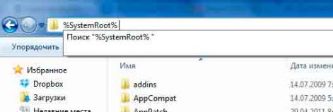 Открываем «Мой компьютер» в адресную строку вписываем %SystemRoot% и нажимаем Enter. Нас перекинет в папку с текущей операционной системой.