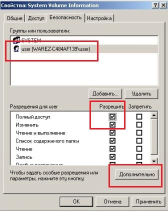 Выбираем себя в поле "Группы или пользователи", в разрешениях ставим Полный доступ, нажимаем Дополнительно